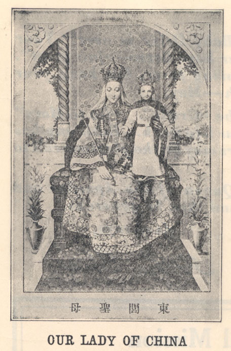 中華聖母,中華之主保,天主之母,為我們罪人痛苦,又為中華的國家民族哀傷,我們來到妳面前,求妳庇護,求妳給我們指望。我們知道以我們自身的能力,不可能救我們自己,我們也知道我們的國家和民族是在怎樣的罪惡中。我們懇求妳,垂顧我們可憐的國家,保守民衆,離棄罪行,尋求聖善;求妳軟化鉄硬的心腸,恩賜人民認識真理的智慧。我們祝聖那些管理國家的權柄,使中華國度能因他們的管理和權柄受益,無論是在精神上,還是道德上,他們的工作都會使我們的國家的運行能與妳的聖子耶穌的教導維持一致。求妳捆綁那些企圖對我們的國家和民族,以及衷心為國家民族服務和奉獻自己的人施加邪惡和毒害的力量,無論是通過怎樣的方式,屬靈的,還是人爲的,使妳聖子的僕人蒙恩;求妳的恩惠臨到這片土地與人民,因妳子民道德的改善,得蒙仁慈寬厚的管理者承行妳的聖子耶穌聖心之所願,以彰顯祂的榮耀,免得我們得配與我等惡行相稱的邪惡統治。我們全心信賴天父之愛與妳的母愛,我們全心信賴妳一定會照看我們,決不會忘記我們。童貞聖母瑪利亞,為我等祈!因父,及子,及聖神之名,阿門+